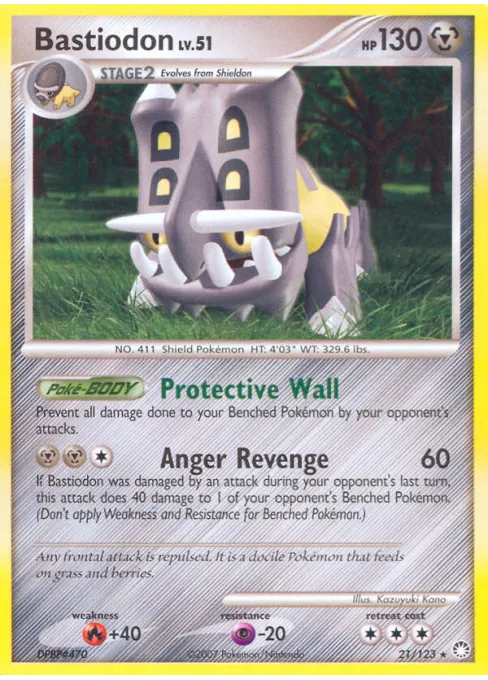 If Bastiodon was damaged by an attack during your opponent's last turn, this attack does 40 damage to 1 of your opponent's Benched Pokémon. (Don't apply Weakness and Resistance for Benched Pokémon.)