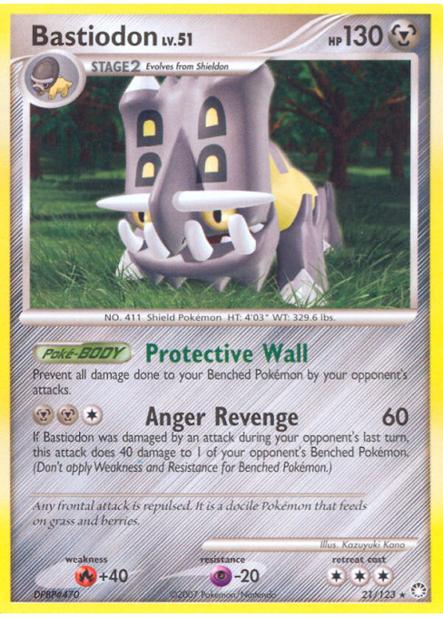 If Bastiodon was damaged by an attack during your opponent's last turn, this attack does 40 damage to 1 of your opponent's Benched Pokémon. (Don't apply Weakness and Resistance for Benched Pokémon.)
