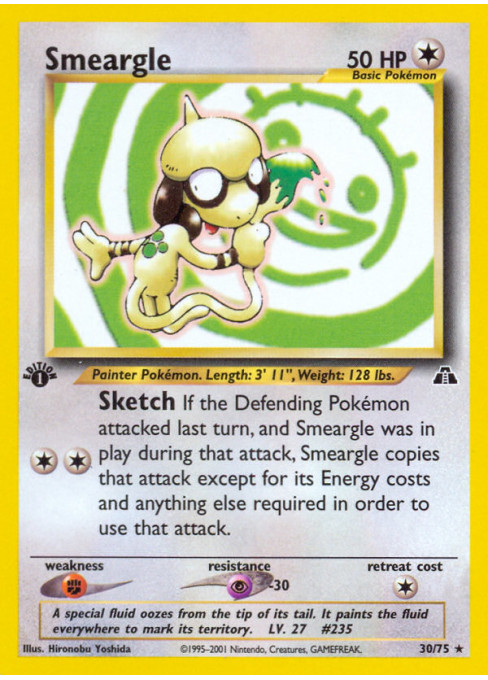 If the Defending Pokémon attacked last turn, and Smeargle was in play during that attack, Smeargle copies that attack except for its Energy costs and anything else required in order to use that attack.