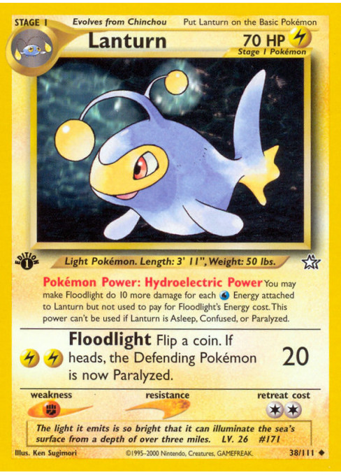 You may make Floodlight do 10 more damage for each Water Energy attached to Lanturn, but not used to pay for Floodlight's Energy cost. This power can't be used if Lanturn is Asleep, Confused, or Paralyzed.