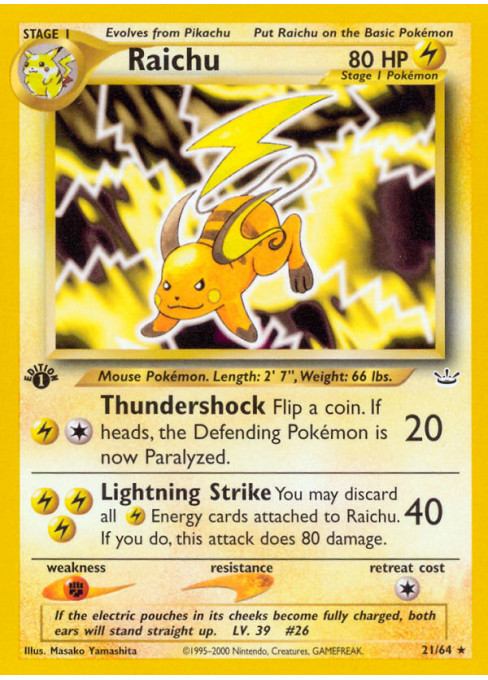 You may discard all Lightning Energy cards attached to Raichu. If you do, this attack does 80 damage.