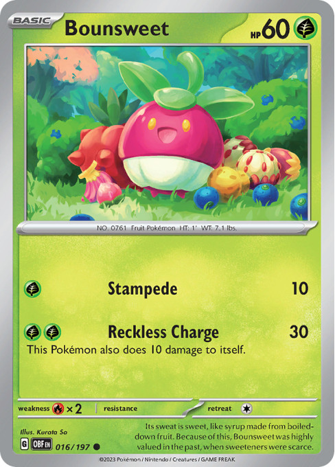 Its sweat is sweet, like syrup made from boiled-down fruit. Because of this, Bounsweet was highly valued in the past, when sweeteners were scarce.