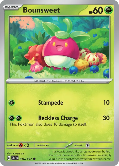 Its sweat is sweet, like syrup made from boiled-down fruit. Because of this, Bounsweet was highly valued in the past, when sweeteners were scarce.
