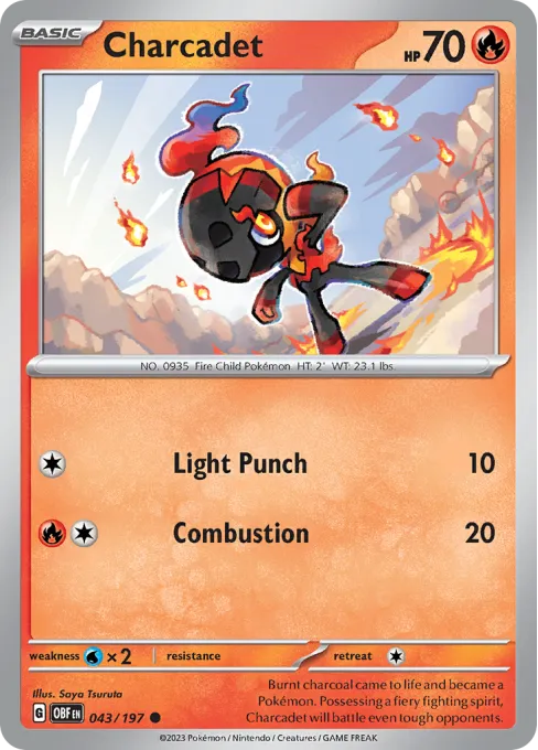 Burnt charcoal came to life and became a Pokémon. Possessing a fiery fighting spirit, Charcadet will battle even tough opponents.