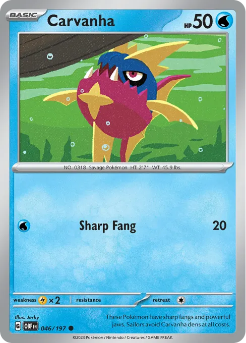 These Pokémon have sharp fangs and powerful jaws. Sailors avoid Carvanha dens at all costs.