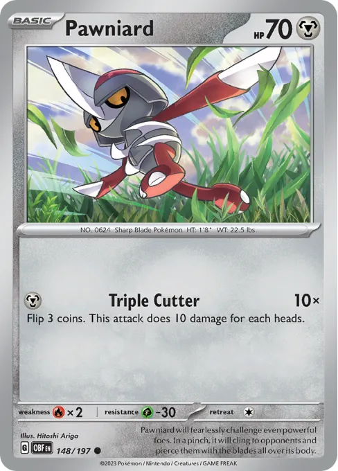 Pawniard will fearlessly challenge even powerful foes. In a pinch, it will cling to opponents and pierce them with the blades all over its body.