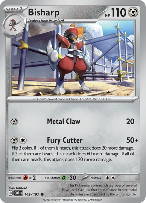 This Pokémon commands a group of several Pawniard. Groups that are defeated in territorial disputes are absorbed by the winning side.