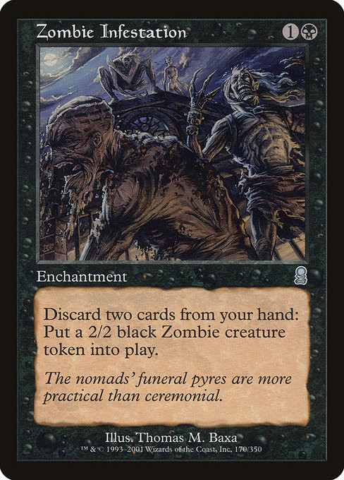 Discard two cards: Create a 2/2 black Zombie creature token.
