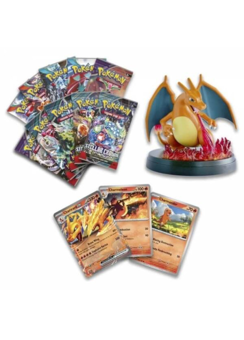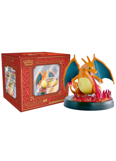 Pokémon Charizard ex Super Premium Collection je balení Pokémon karet, balíčků a krásné figurky Charizarda. Jedná se o jedinečnou exkluzivní kolekci, která tu ještě nebyla. Toto balení bude chtít každé dítě jako svůj vysněný dárek. Nejen, že získá přímo vzácnou kartu Charizard ex, ale ještě bezvadnou figurku Charizarda. Na ní se dá umístit karta, kterou jakoby Charizard chrání.