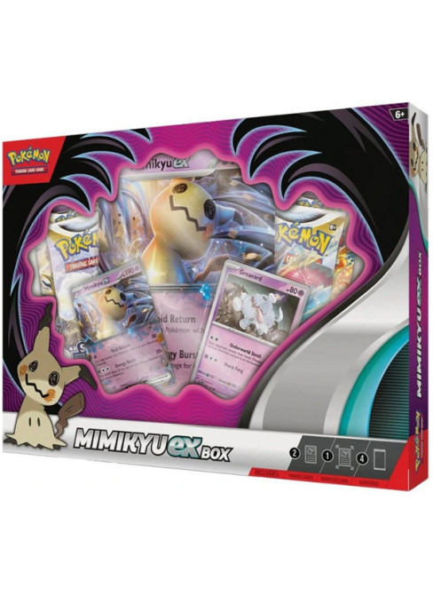 Pokémon Mimikyu ex Box je speciální dárkový produkt karetní hry Pokémon, který umožňuje hráčům snadno získat kartu silného psychického Pokémona Mimikyu ex. V balení se nachází dvě speciální Promo karty (Mimikyu ex a Greavard) a obří sběratelská Jumbo karta Mimikyu ex. Karty jsou pro tento produkt unikátní a nikde jinde se zatím neobjevily. Součástí obsahu jsou také 4 doplňkové Booster balíčky a kód do online hry. Mimikyu ex je karta, která se hodí do všech psychických herních balíčků a zároveň doplní vaši karetní kolekci Pokémonů!