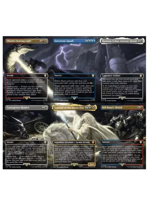Každý Scene Box obsahuje šest nových karet Magic. Nové karty se objevili také ve speciální edici Collector Boosterů v nefoliové a surge foil verzi. Tyto karty jdou legální v Legacy, Vintage, Commanderu a dalších Eternal formátech, představují vzrušující způsob, jak proniknout do epických příběhů Středozemě.