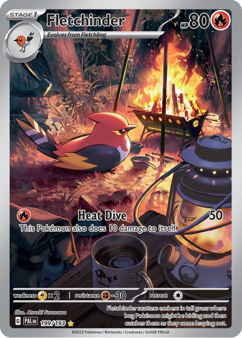 Fletchinder scatters embers in tall grass where bug Pokémon might be hiding and then catches them as they come leaping out.