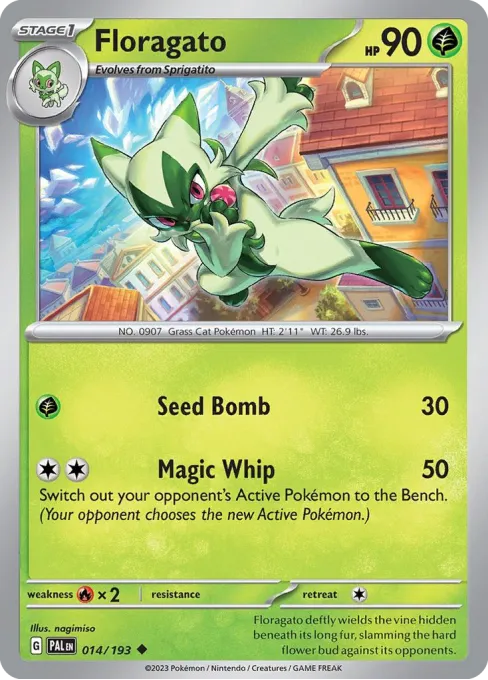 Floragato deftly wields the vine hidden beneath its long fur, slamming the hard flower bud against its opponents.