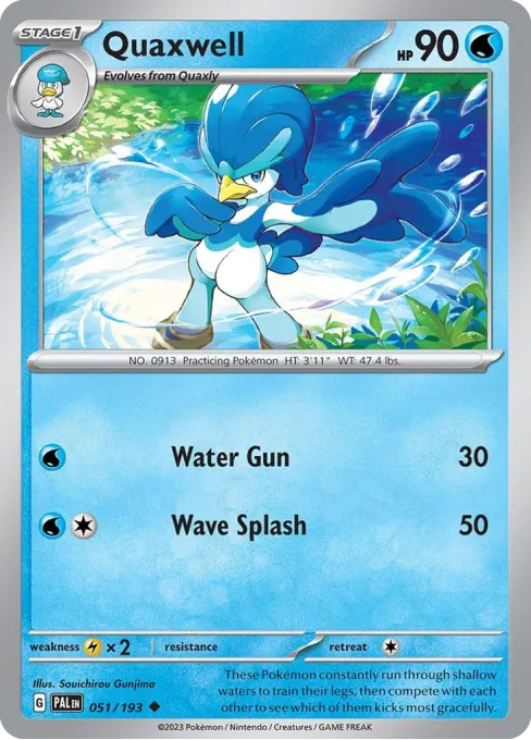 These Pokémon constantly run through shallow waters to train their legs, then compete with each other to see which of them kicks most gracefully.