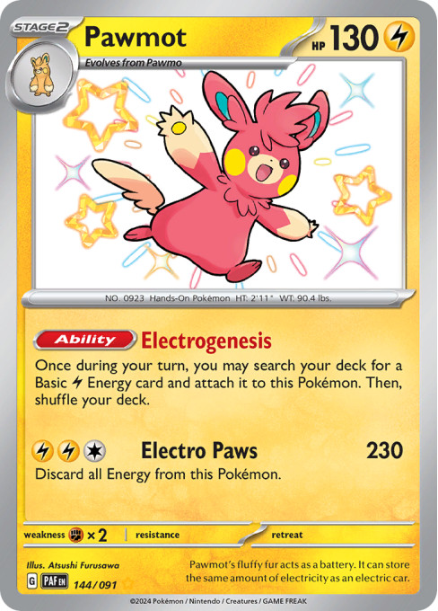 Pawmot's fluffy fur acts as a battery. It can store the same amount of electricity as an electric car.
