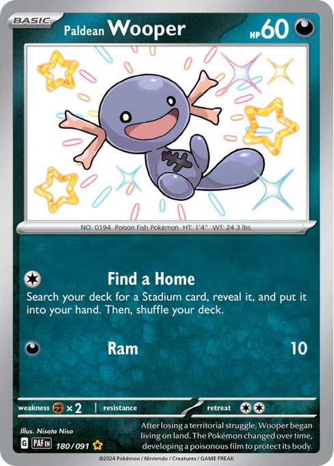 After losing a territorial struggle, Wooper began living on land. The Pokémon changed over time, developing a poisonous film to protect its body.