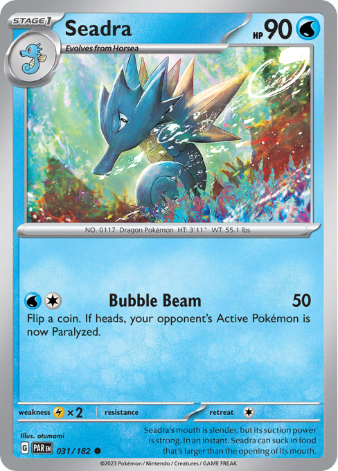 Seadra's mouth is slender, but its suction power is strong. In an instant, Seadra can suck in food that's larger than the opening of its mouth.