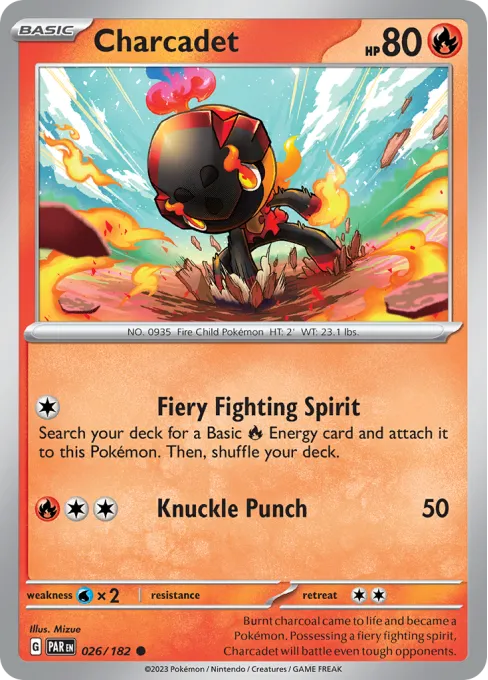 Burnt charcoal came to life and became a Pokémon. Possessing a fiery fighting spirit, Charcadet will battle even tough opponents.