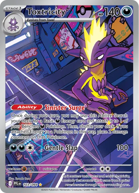 As it scatters toxic sweat and emits electricity, a melody that sounds like it came from a guitar reverberates through the surrounding area.