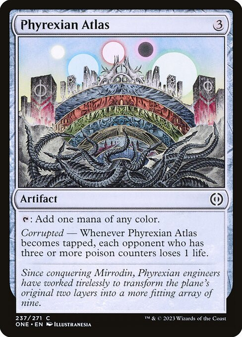 Corrupted — Whenever Phyrexian Atlas becomes tapped, each opponent who has three or more poison counters loses 1 life.