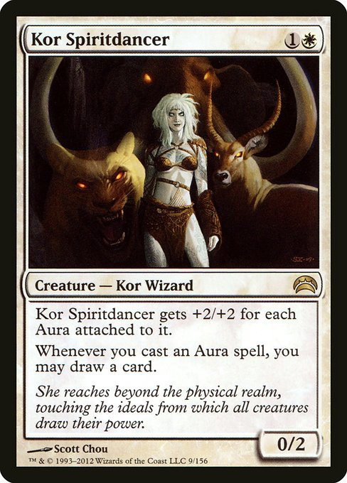 Kor Spiritdancer gets +2/+2 for each Aura attached to it.