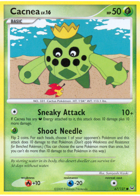 If Cacnea has any Darkness Energy attached to it, this attack does 10 damage plus 10 more damage.