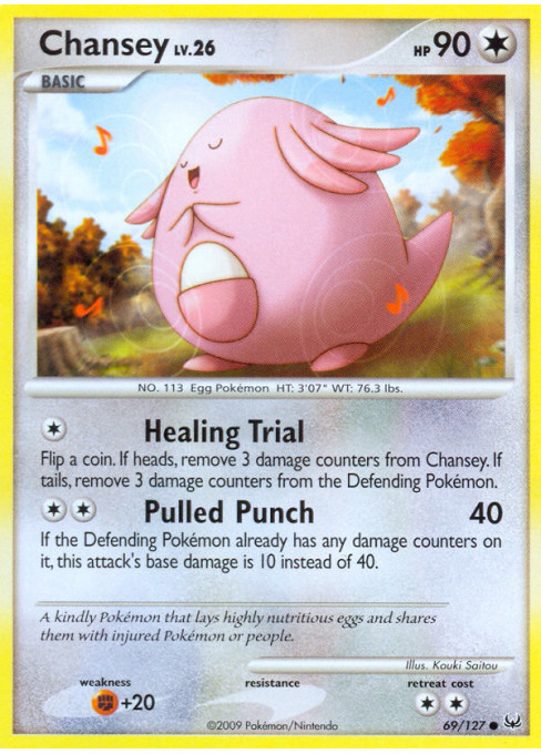 Flip a coin. If heads, remove 3 damage counters from Chansey. If tails, remove 3 damage counters from the Defending Pokémon.