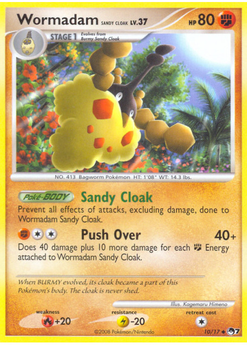When BURMY evolved, it cloak became a part of this Pokémon's body. The cloak is never shed.