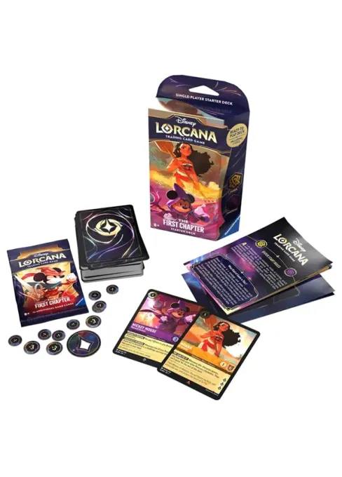 V tomto produktu naleznete 60ti karetní před-připravený herní balíček postavený na barvách Amethyst a Amber. Balení Lorcana: First Chapterer Starter Deck - The Hearth of Magic je připravené tak, abyste okamžitě po jeho rozbalení mohli začít hrát. Ponořte se do pohádkového světa Disney!
