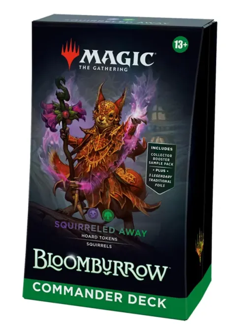 Magic: The Gathering - Bloomburrow: Squirreled Away je kompletní balíček o 100 kartách, připravený k okamžitému hraní.