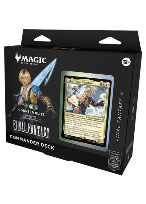 FINAL FANTASY – Counter Blitz je Commander balíček s tématikou Final Fantasy, kde hlavní úlohu zastává protagonista Tidus. Tento balíček je součástí série Universes Beyond, která přináší ikonické postavy, kouzla a prostředí ze světa Final Fantasy do karetní hry Magic: The Gathering. Balíček využívá kombinaci barev zelená-bílá-modrá (Bant) a soustředí se na mechaniky jako jsou countery, posilování bytostí a týmovou spolupráci.