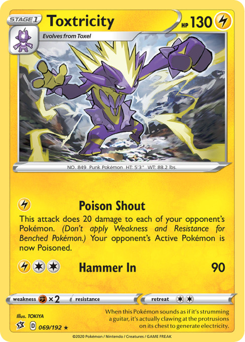 This attack does 20 damage to each of your opponent's Pokémon. (Don't apply Weakness and Resistance for Benched Pokémon.) Your opponent's Active Pokémon is now Poisoned.