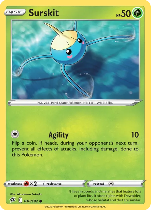 It lives in ponds and marshes that feature lots of plant life. It often fights with Dewpider, whose habitat and diet are similar.