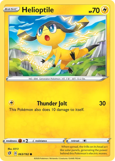 When spread, the frills on its head act like solar panels, generating the power behind this Pokémon's electric moves.