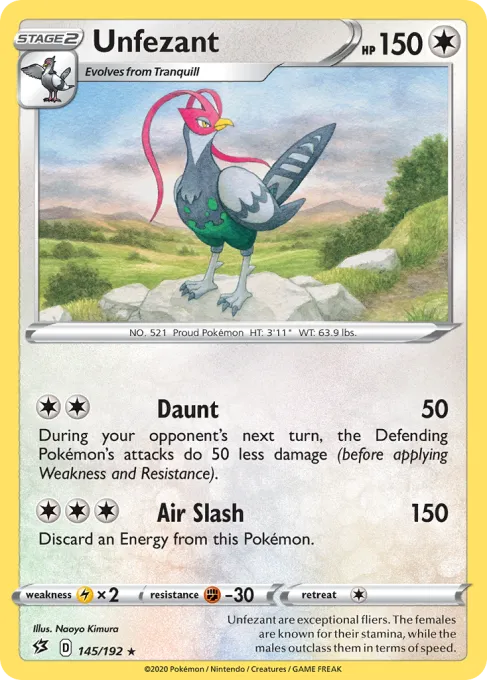 Unfezant are exceptional fliers. The females are known for their stamina, while the males outclass them in terms of speed.