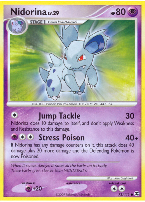 If Nidorina has any damage counters on it, this attack does 40 damage plus 20 more damage and the Defending Pokémon is now Poisoned.