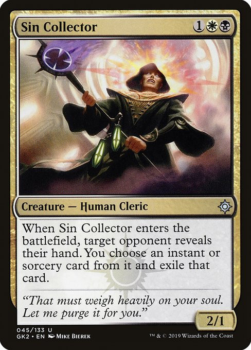 When Sin Collector enters, target opponent reveals their hand. You choose an instant or sorcery card from it and exile that card.