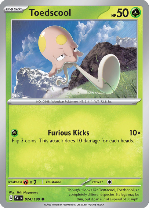 Though it looks like Tentacool, Toedscool is a completely different species. Its legs may be thin, but it can run at a speed of 30 mph.
