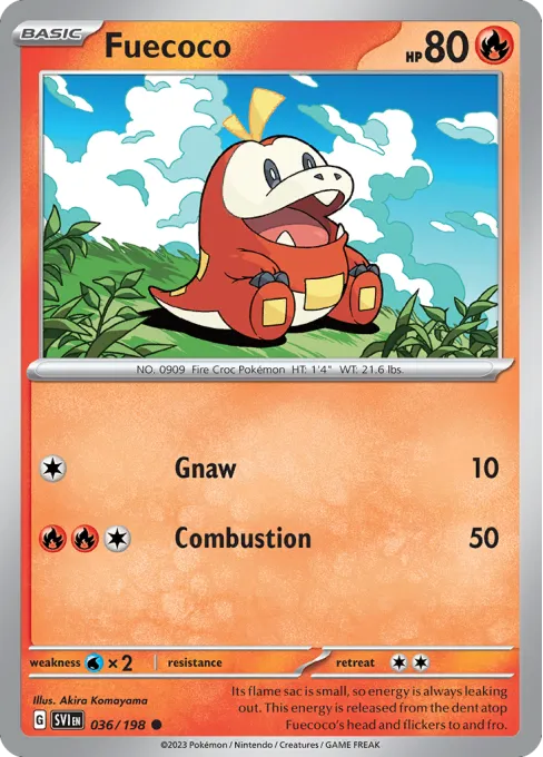 Its flame sac is small, so energy is always leaking out. This energy is released from the dent atop Fuecoco's head and flickers to and fro.