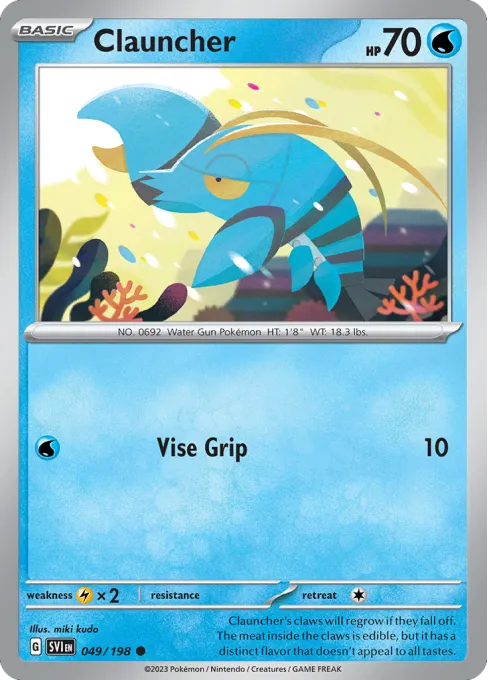 Clauncher's claws will regrow if they fall off. The meat inside the claws is edible, but it has a distinct flavor that doesn't appeal to all tastes.