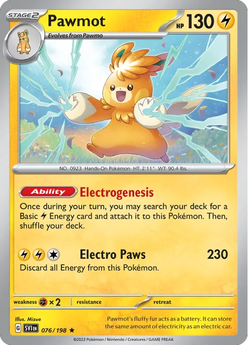 Pawmot's fluffy fur acts as a battery. It can store the same amount of electricity as an electric car.