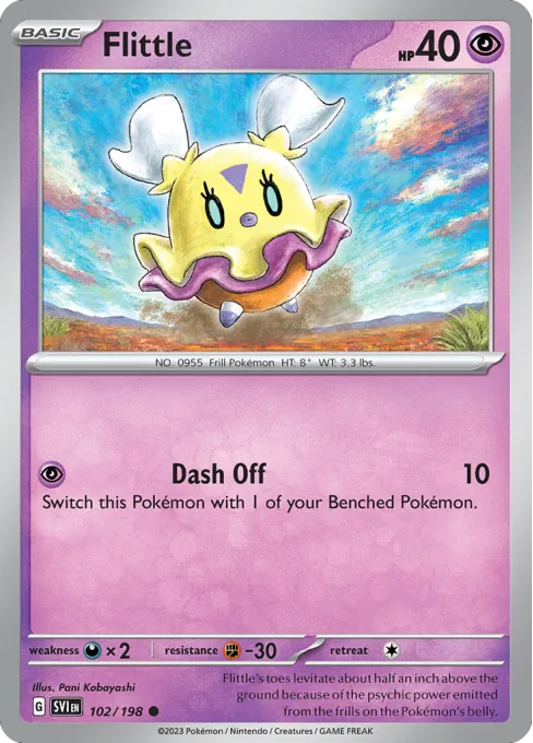 Flittle's toes levitate about half an inch above the ground because of the psychic power emitted from the frills on the Pokémon's belly.