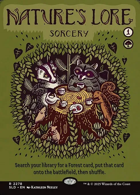 Search your library for a Forest card, put that card onto the battlefield, then shuffle.