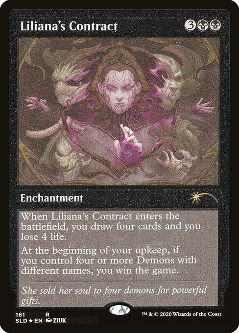 "She sold her soul to four demons for powerful gifts."