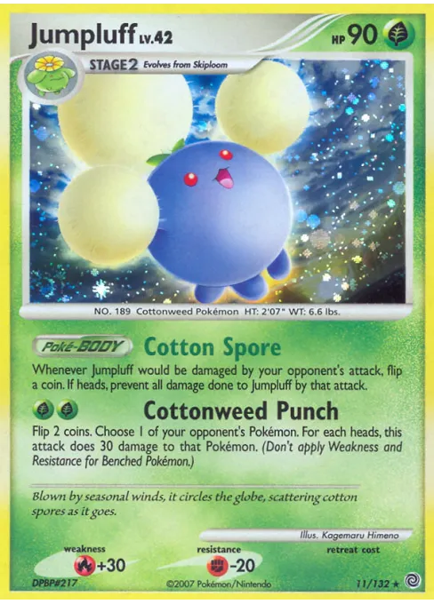 Whenever Jumpluff would be damaged by your opponent's attack, flip a coin. If heads, prevent all damage done to Jumpluff by that attack.