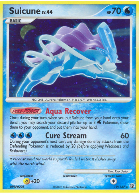 Once during your turn, when you put Suicune from your hand onto your Bench, you may search your discard pile for up to 3 Water Pokémon, show them to your opponent, and put them into your hand.