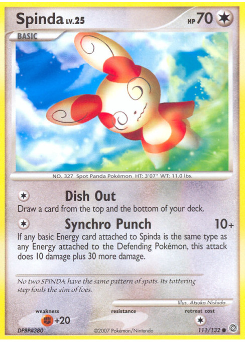 If any basic Energy card attached to Spinda is the same type as any Energy attached to the Defending Pokémon, this attack does 10 damage plus 30 more damage.