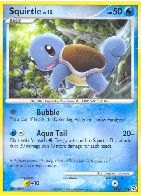 Flip a coin for each Water Energy attached to Squirtle. This attack does 20 damage plus 10 more damage for each heads.