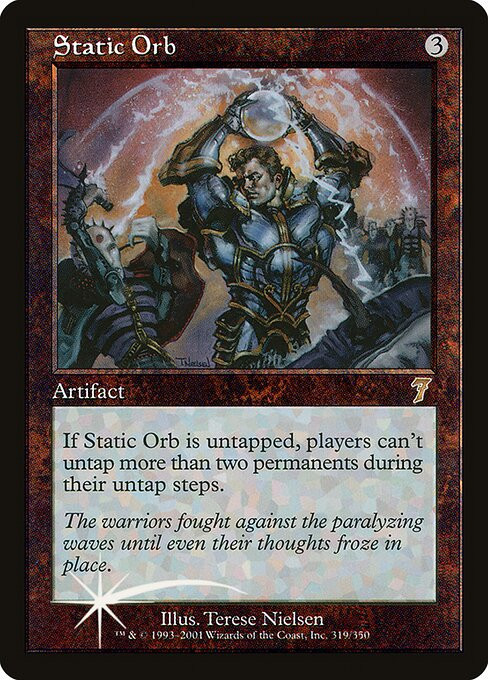 As long as Static Orb is untapped, players can't untap more than two permanents during their untap steps.