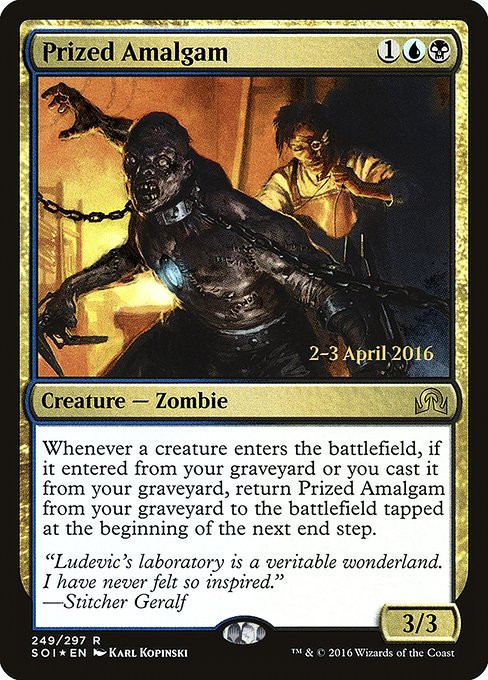 Whenever a creature enters, if it entered from your graveyard or you cast it from your graveyard, return Prized Amalgam from your graveyard to the battlefield tapped at the beginning of the next end step.
